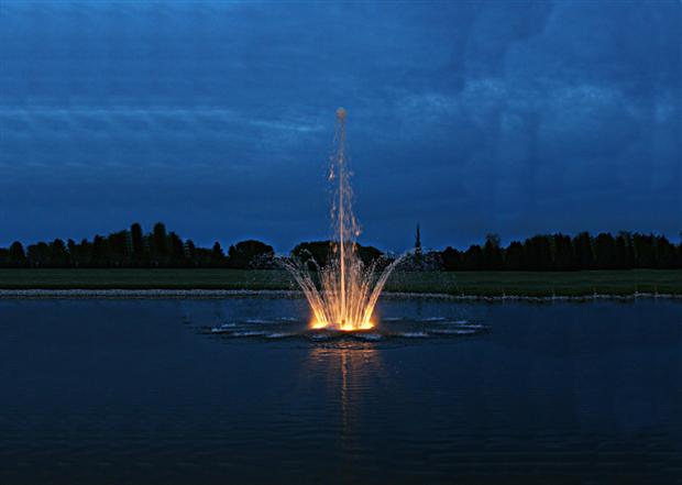 Add a taste of elegance to your pond or lake with our Kiawah fountain pattern. The Kiawah is an exquisite two tier pattern combining a center geyser and multi-streamed lower tiered spray ring available with 32 or 64 nozzles. The Kiawah is only available in 7.5 HP & 10 HP.
