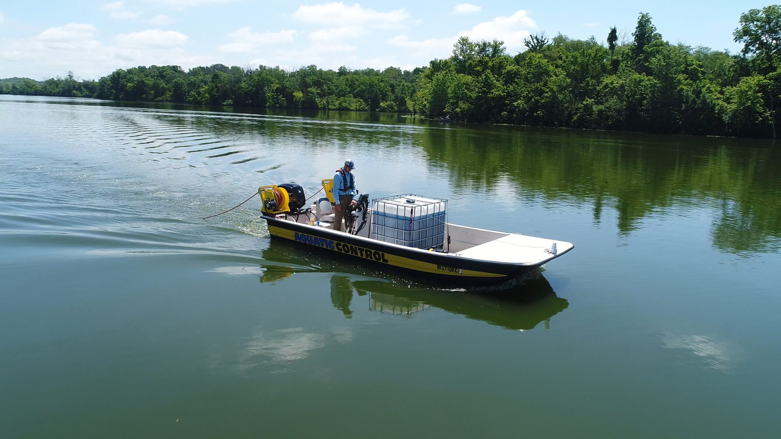 Supported by a staff of licensed aquatic applicators and staff biologists, we use specialized equipment. From treatment boats to drones, to serve even the most remote farm ponds